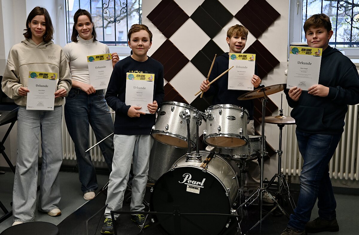 Der Bundeswettbewerb "Eine-Welt-Song" hatte am 5. Dezember sein großes Finale in Berlin. Auch wenn es unser Song "Unter den Wellen" leider nicht unter die Top-20 geschafft hat sind wir dankbar für die tolle Erfahrung. Dabei zu sein war sehr toll und die Schülerinnen und Schüler haben viel über den Entstehungsprozess eines Songs gelernt und sind als Band in den letzten Monaten musikalisch und persönlich richtig toll zusammen gewachsen. Noch einmal vielen Dank an all die Unterstützerinnen und Unterstützer, diesen tollen Contest und natürlich Eltern und Schülerinnen und Schülern für ihr Mitwirken! Wir werden im kommenden Jahr wieder dabei sein und arbeiten fleißig an neuen Songs!